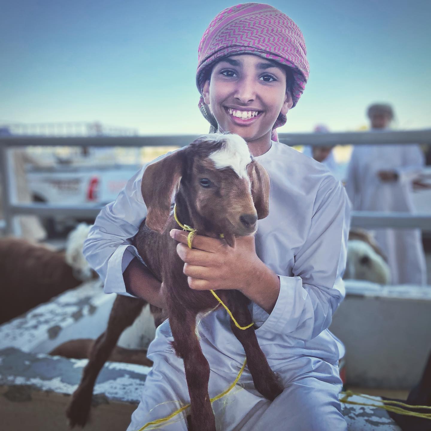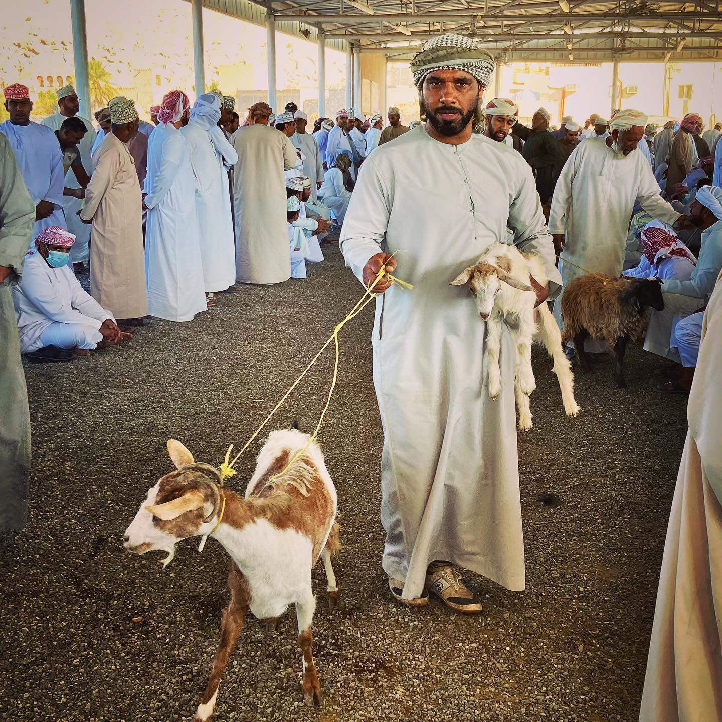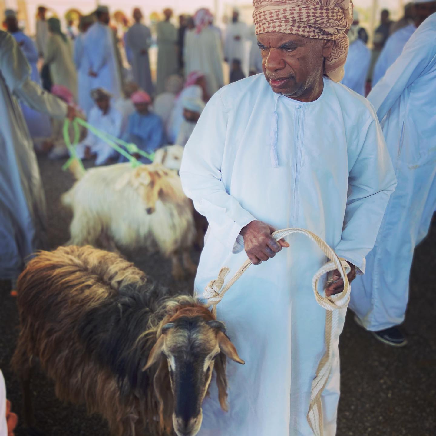 Until now, it’s sometimes felt like Omani men do little more than stand in elegantly inexpensive sunglasses and regal, white dishdashas while south Asians do all the dirty labouring around them, but here their crisp white gowns were splattered in manure as the men dragged and coerced animals about, shouting, haggling and gesticulating. As money changed hard-working hands, my opinion of Omani men shifted a little too.