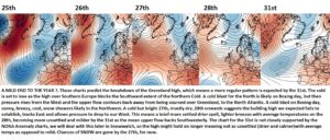 There’s very little chance of a White Christmas; the cold air to our near North is blocked from further Southward progress by the high over Southern Europe.